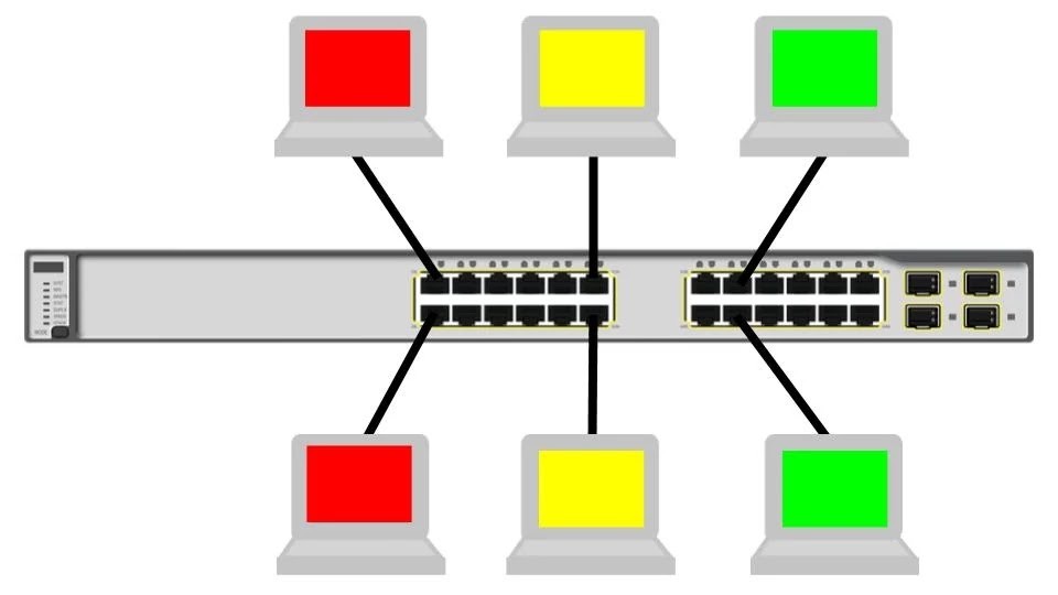 Switching lanjutan fokus pada bagaimana switch profesional bekerja. Siswa belajar bagaimana VLAN digunakan untuk membagi jaringan secara logis agar lebih aman dan terkelola. Dengan VLAN, satu gedung bisa memiliki beberapa jaringan berbeda tanpa harus menggunakan banyak perangkat fisik. Siswa belajar konfigurasi VLAN, trunking, serta inter-VLAN routing. VLAN juga sering digunakan untuk memisahkan jaringan guru, siswa, tamu, dan server agar lebih aman. Dalam latihan, siswa menggunakan switch managed dan mencoba membuat beberapa VLAN serta menghubungkannya agar tetap dapat saling berkomunikasi melalui router.